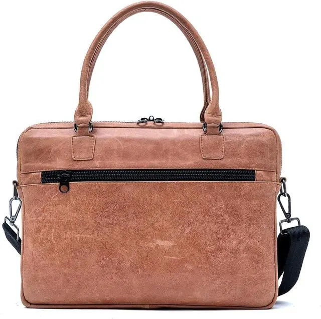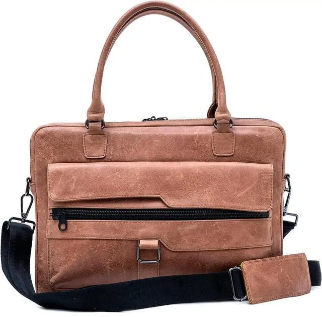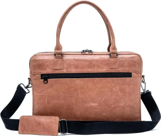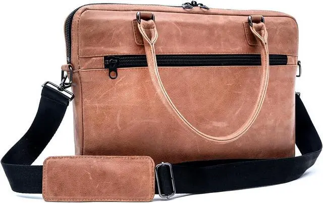 Genuine Cowhide Leather ^^ Adjustable Black Shoulder Strap ^^ Accessory Storage Pockets for Portable Mouse, IPod, Cell Phone and Pens ^^ Zip