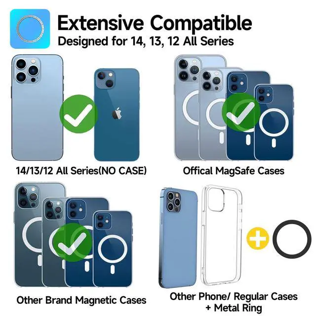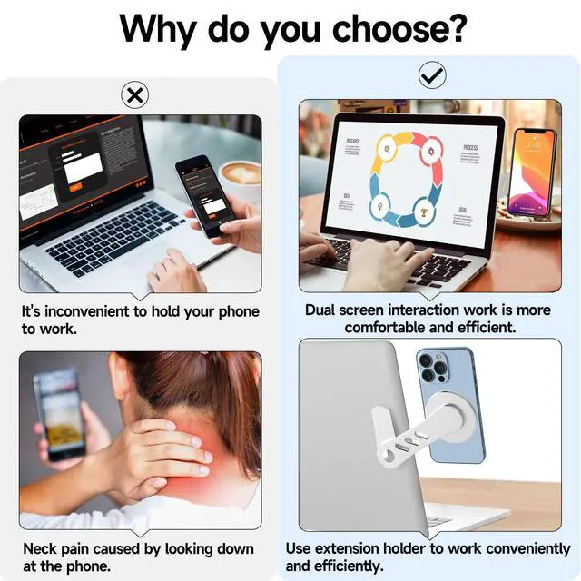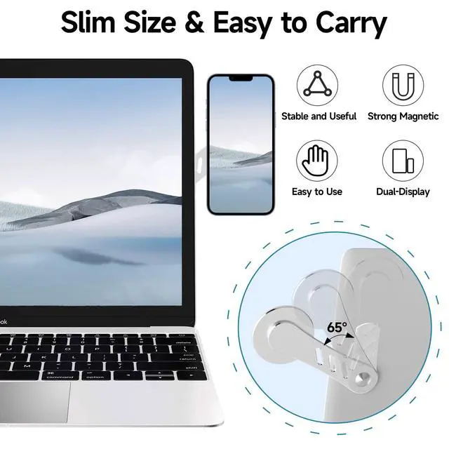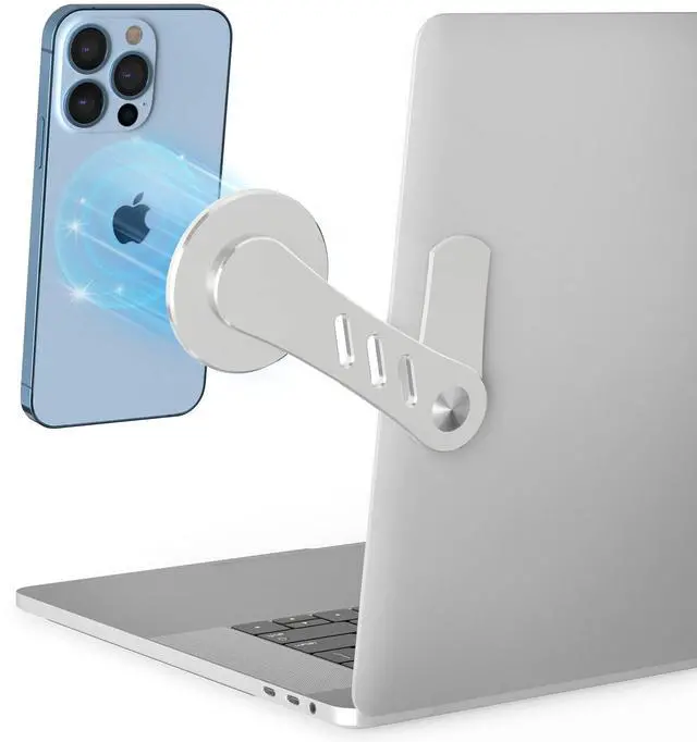 New UpgradedLaptop Phone StandDesign for iPhone 15/14/13/12 series phones. This laptop/ monitor side magnetic phone mount can hold iPhone 15/14/13/12 series phones directly; This magnetic phone holder for laptop also works for Original Official MagSafe case and other magnetic cases, no need to use the additional metal ring.