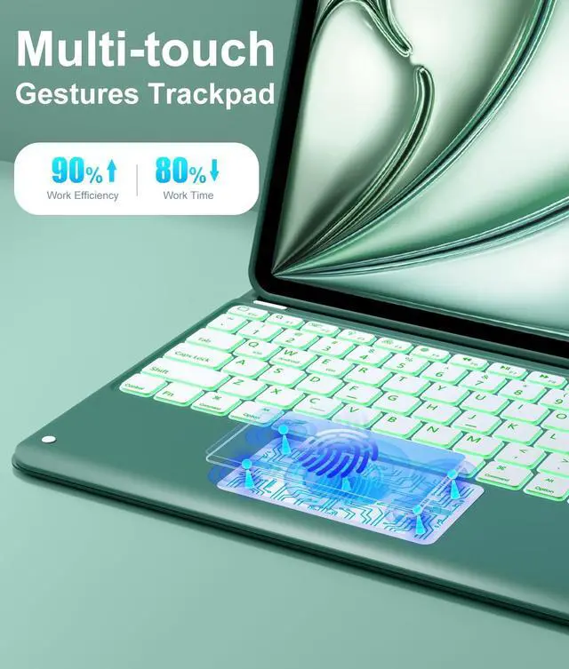 Multi-Touch Gestures Trackpad: This for iPad Air 13 inch case with keyboard integrated multi-functional touchpad. Use a trackpad for precision tasks, like editing a spreadsheet, browsing the web, and managing applications. Scroll, swipe, and zoom effortlessly, do not need a mouse. The responsive and intuitive trackpad enhances your efficiency ^^