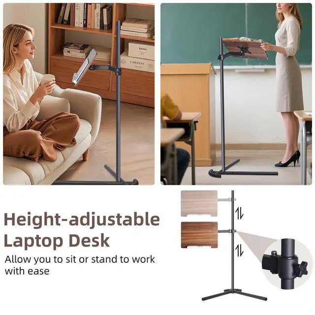 Premium QualityThis Laptop stand for couch is made of high-quality steel and wood, ensuring durability and stability for long-term use. ^^ Adjustable Height&AngleAdjust the height and angle of the stand to your preference, providing you with a comfortable and ergonomic viewing experience. Enjoy the freedom to relax your neck, release your hands, protect your eyesight, and develop a good sitting posture. ^^ Wide ApplicationThis versatile Laptop stand for couch is compatible with Macbook/Laptop 13 - 17.3", MS Surface Pro, MS Surface Book ( 13.5", 15"), and 7-13" tablets/smartphones/iPhones (including iPad Air, IPAD Pro 12.9", MS Surface in tablet mode without keyboard).