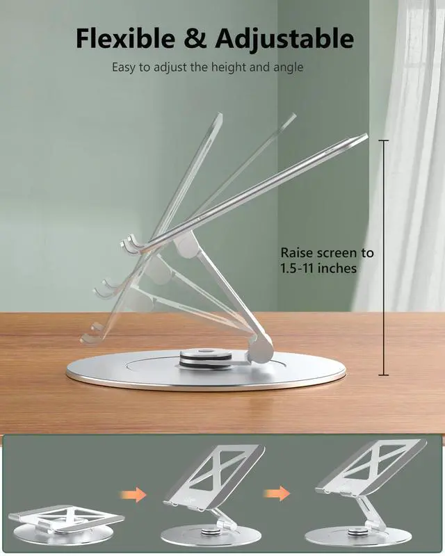 ^^ [Adjustable Design & Fashion base] - LOXP aluminum adjustable laptop stand for desk is both elegant and durablefeaturing a 300% larger base with an 11.02" diameter and a stylish CNC- carved design. It is also adjustable and collapsible, can raise the laptop screen to 1.5 -11 inches, great for neck and back strain. ^^ [SPACE