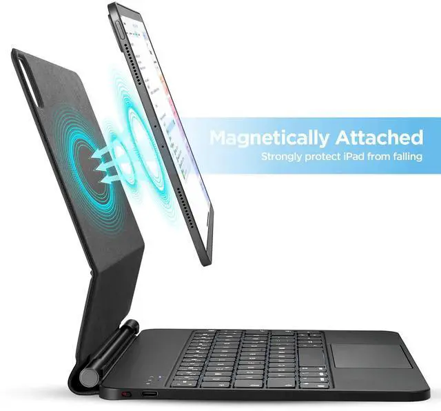Seamless Magnetic Attachment & Protection: Powerful magnets ensure a secure and stable connection between the keyboard and your iPad. The premium leather case safeguards your device from all angles against bumps, scratches, and spills. Enjoy the flexibility of a free-floating design to adjust to your perfect viewing angle. ^^