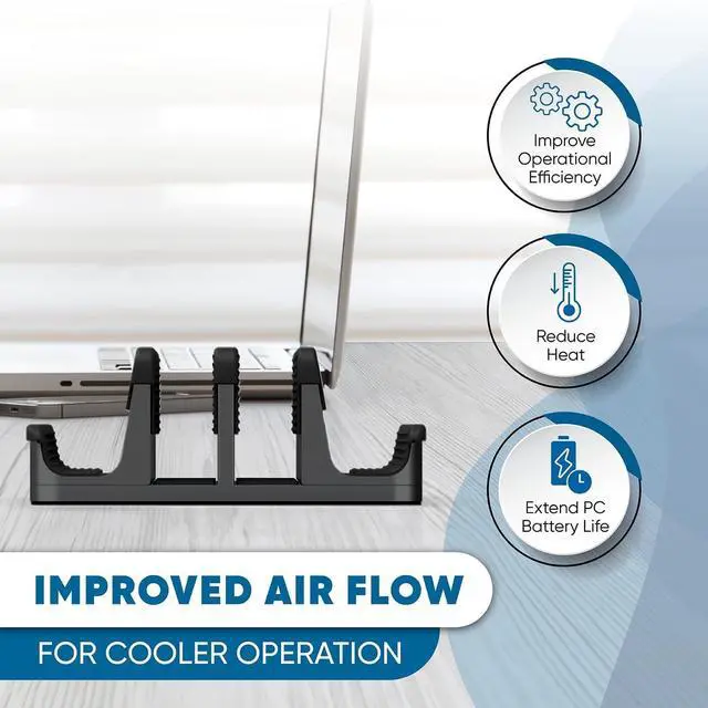 Modern Design & Laptop Holder: Elevate your workspace experience with this high grade aluminum finish vertical laptop holder; cradle and hold your laptop, MacBooks, or mobile devices in style, while reclaiming 80% of your desk space. This laptop holder vertical saves valuable desk space, protects your device from spills, provides better cooling and 360- degree airflow with this premium vertical laptop holder.