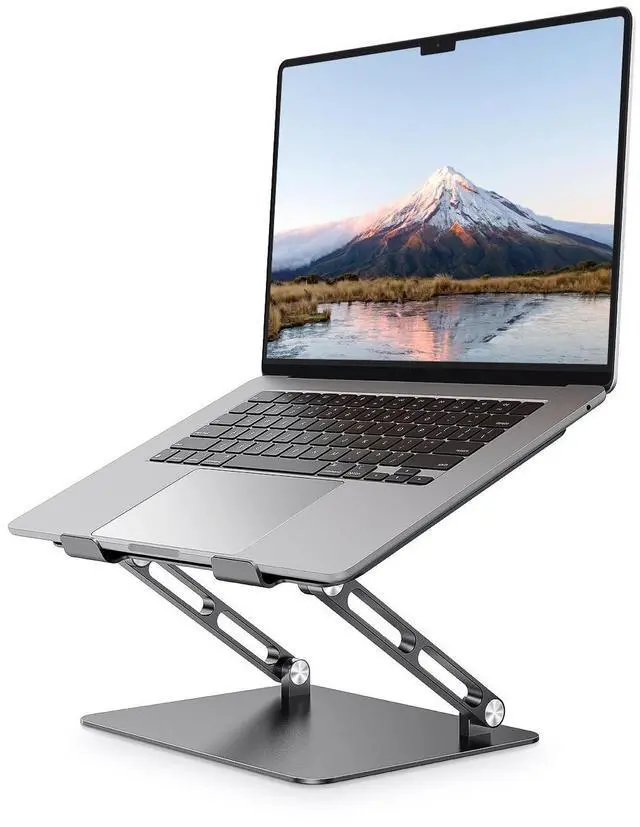 Ergonomic Design. This laptop stand adopting an ergonomic design makes it easy to raise your laptop to your perfect viewing level, preventing eye fatigue and neck pain while improving your posture. ^^ Durable and Stable. Featuring an 8kg/18lb weight capacity, this aluminum laptop stand can hold various laptops ranging from 10 to 17.3 without wobble. Larger-sized base with non-slip rubbers and protective hooks provides extra stability and security for your laptops. ^^ Wide Use. This laptop stand for desk is widely compatible with a variety of laptops, notebooks, and tablets, Acer Swift, Asus ZenBook, LG Gram, iPad Pro, and Galaxy Tab.