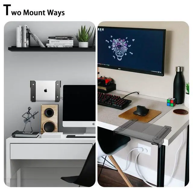 Universal Laptop Storage MountThis laptop stand fits any device between 0.51" and 1.18" thick, including laptops, Macbooks, Surface, keyboards, Nintendo Switch, streaming devices, files, folders and more. ^^ Two Mounting OptionsThis laptop holder can be mounted on the wall or underneath your desk as needed to keep your desk tidy and organised. ^^ High Quality MaterialThe under desk laptop holder is made of high quality galvanised steel, which is stronger and more durable compared to other materials. Built in anti-scratch EVA pads inside, it will never scratch your device.