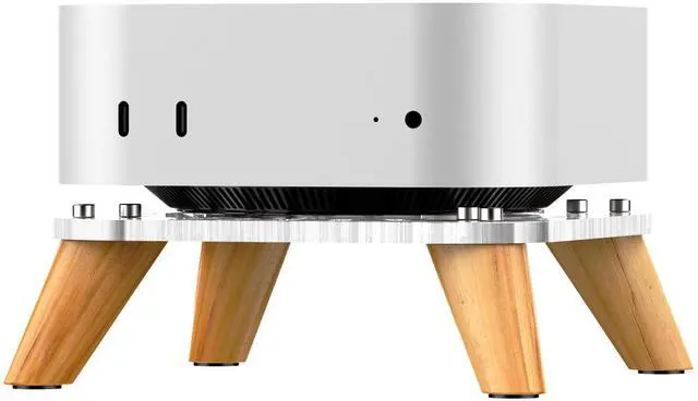 3. Anti-slip protection: The stand comes with 8 non-slip silicone pads on the acrylic when the Mac Mini M4 is placed and also comes with non-slip pads on the bottom of the 4 solid wood feet to ensure stability and non-slip.