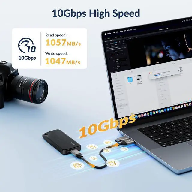 Speed: i10PRO external SSD delivers read speeds up to 1057MB/s and write speeds up to 1047MB/s. Whether transferring large files, HD videos or photos, the portable SSD could meet your external storage needs.
