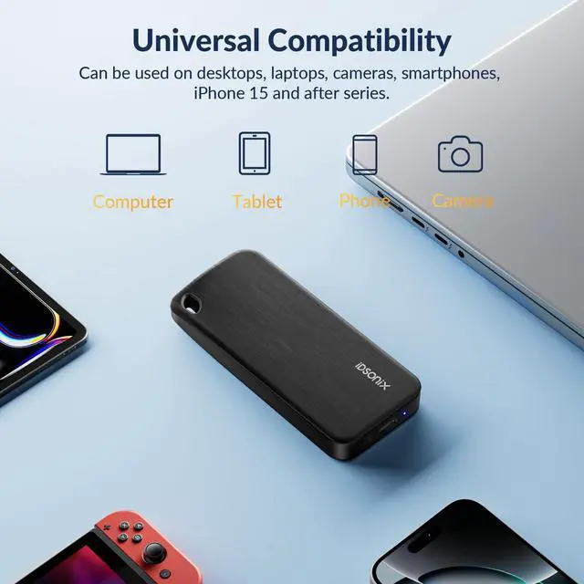 ^^ Universal Device Compatibility: Come with a 2-in-1 USB cable, i10PRO portable hard drive is compatible with Windows/Android/Mac OS systems, and compatible with PS5/PS4 (Pro), Xbox, iPhone 15 pro, Mac, laptops, desktops, tablets and cameras.