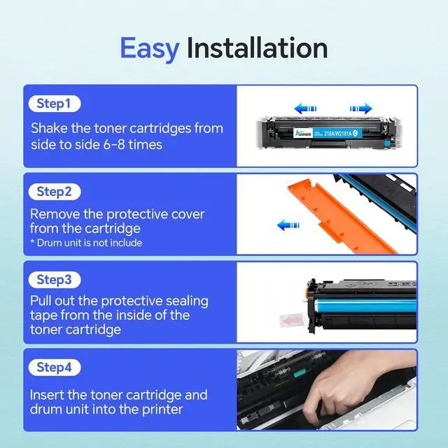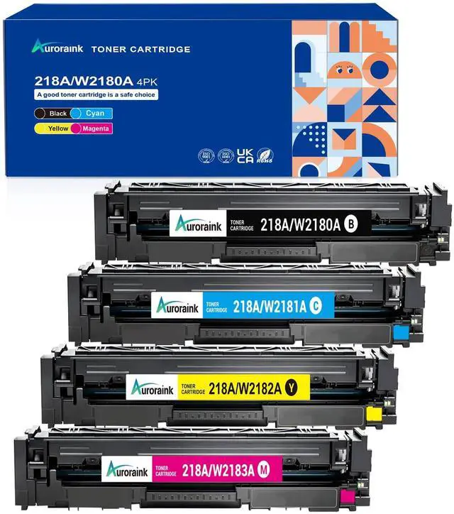 Package Contents: 218A toner cartridges 4 pack replacement for HP 218A toner cartridges (1 * 218A black, 1 * 218A cyan, 1 * 218A magenta, 1 * 218A yellow toner cartridge).