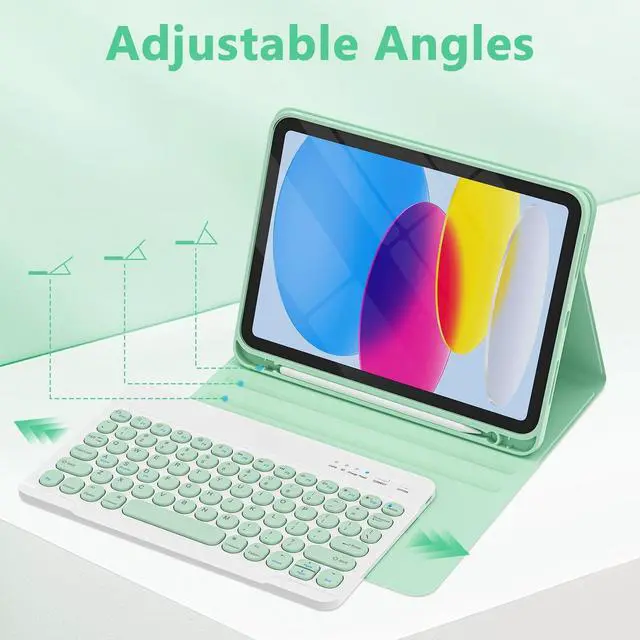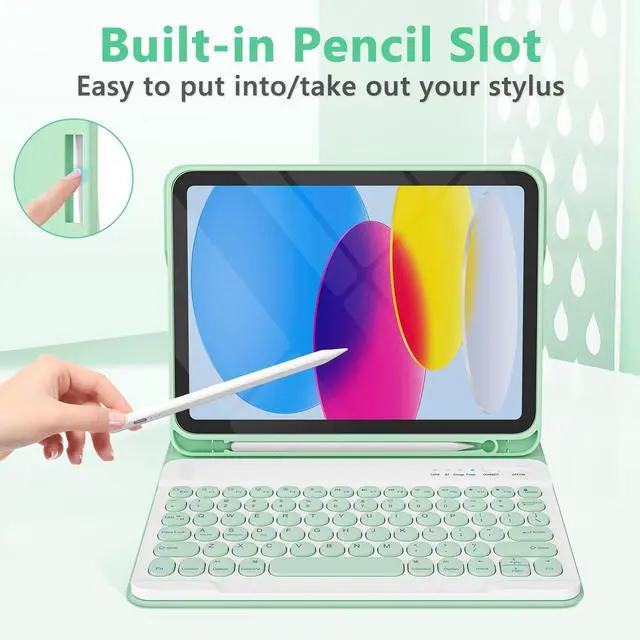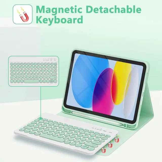 Wireless keyboard: Detachable wireless keyboard with round keycap design, round and cute appearance, compact layout and convenient connection. The keyboard for ipad a16 is slim and portable, easy to carry and to put into a briefcase, handbag or backpack ^^