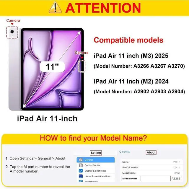 Compatible Models: Compatible with Apple iPad Air 11 inch (M3) (2025 release), (Model