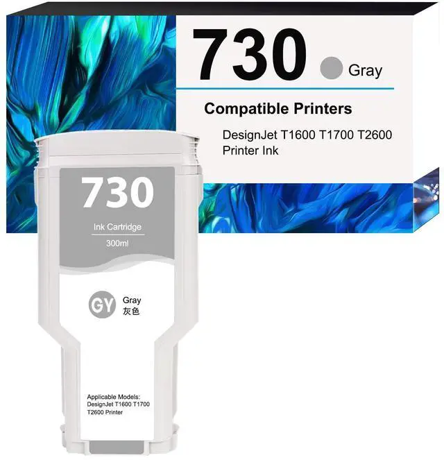 730 Ink Cartridge Replacement for HP 730 Ink Cartridge Grey ^^ For hp 730 ink cartridges Printer CompatibleCompatible with HP DesignJet T1600 T1700 T2600 Printer ^^ Designjet 730 ink Cartridge Capacity 300ML ink per 730 ink cartridge(A4 Letter, at 5 Percent Coverage) ^^ 730 ink cartridges for HP printer combo Package ContentsDesignJet 730 Ink Cartridge Grey (P2V72A) ^^ 730 inkThe ink cartridge provides high-quality printing, clear printing, and does not fade for a long time, providing you with vivid and natural printing effects. The products are suitable for schools, companies, families, etc.