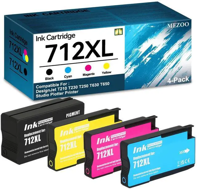 Package Contents: 4 Packs of 712 712XL Ink Cartridges (Black, Cyan, Magenta, Yellow), No initialization requiredinstall and print immediately ^^