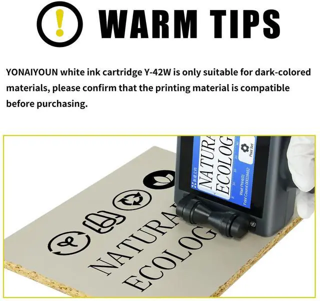 ^^ Wide Applications: This Y-1270B ink cartridge is solvent ink and dries in seconds. Can attach to water absorbing materials and non-porous surfaces, including: carton, wood, paper, clothes, gypsum board, fiberboard, plastic, ceramic, glass, metal, aluminum foil, etc. ^^ Maintenance Tips. The Black Ink Cartridges are Consumable, Once used, We Do not Recommend Return Unless the Product has been Damaged or Ink Leakage.