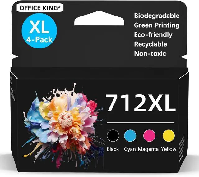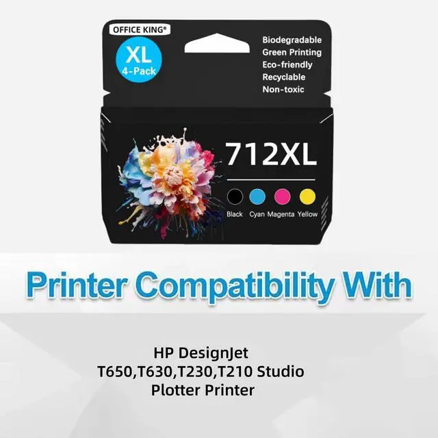 OFFICE KING 712XL 712 XL Ink Cartridges T230 T650 T630 T210 Replacement for HP 712 712XL Ink Cartridges for HP DesignJet T650T630T230T210 Studio Plotter Printer (4-Pack, Black,Cyan,Magenta,Yellow)