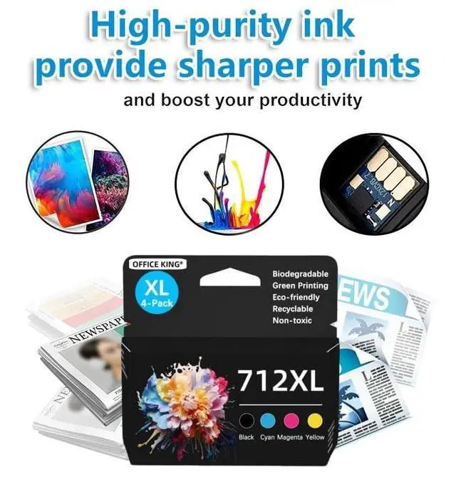 Eco-friendly: Our Kingmo 712 XL ink cartridges for hp designJet Printer are made from 80 recycled plastics , reducing the impact on the environment.