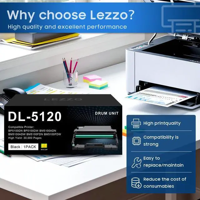 Stability & Durability: Has good durability, can withstand a long time of use and high printing load. In the process of continuous printing, the Lezzo DL-5120 Drum Unit can greatly reduce the possibility of paper jam during the printing process, maintain stable print quality, and ensure the smooth progress of the work ^^