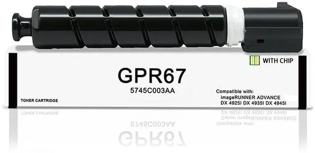 The packaging contains: 1 Pack of GPR-67 Black Toner Cartridge 5745C003AA
