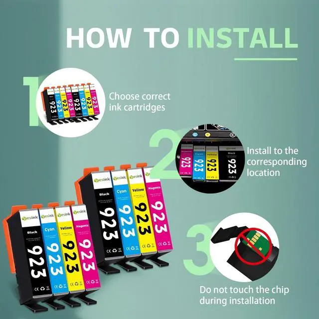 Package Contents: Compatible for hp 923 Ink Cartridge Combo Pack ( 2 Black,2 Cyan,2 Magenta,2 Yellow).
