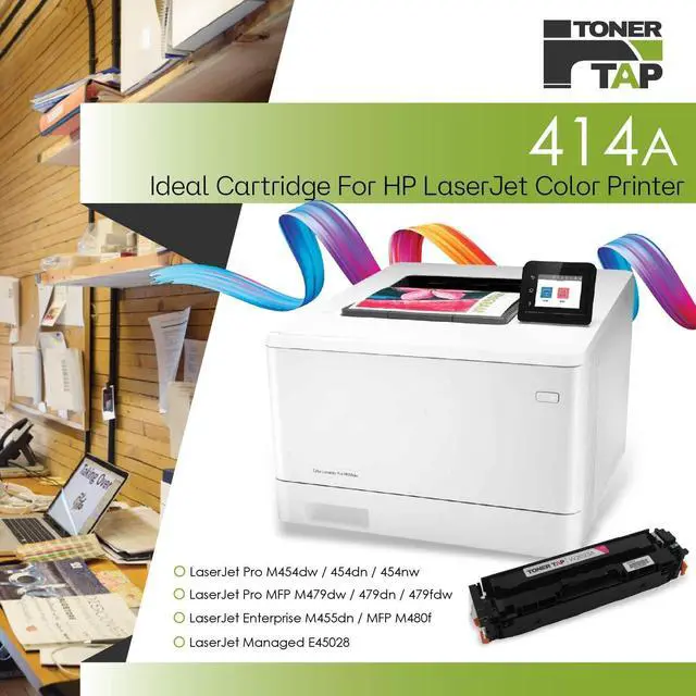 ^^ OEM-Standard Magnetic Roller & Doctor BladeBuilt to original HP specifications for smooth, jam-free performance and consistent results from first to last page. Meets ISO standards for reliability. ^^ Eco-Efficient Toner CartridgeThe 414A toner cartridges deliver high toner utilisation and a low waste powder rate, supporting sustainable printing with reliable performance, comparable to OEM. ^^ Wide HP Printer CompatibilityWorks with HP Color LaserJet Pro M454dn, M454dw, HP Color LaserJet Pro MFP M479dw, M479fdn, M479fdw, HP Color LaserJet Pro M454nw, HP Color LaserJet Enterprise M455dn, HP Color LaserJet Enterprise MFP M480f, HP Color LaserJet Managed E45028.