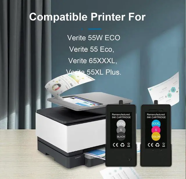 DMAOCO High Capacity Verite 5 Ink Cartridge Replacement for Verite 5 XXXXXL for Verite 55W ECO Verite 55 Eco Verite 65 XXXXXL Verite 55 XXXXXL Plus (2Pack 1Black 1Color)