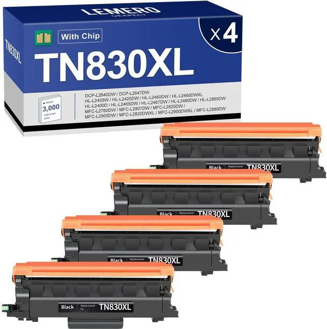 Package Contains: 4-Pack High Yield TN830XL TN830 Toner Cartridges Replacement for Brother TN830XL Toner Cartridge Compatible for Brother DCP-L2640DW Toner ^^