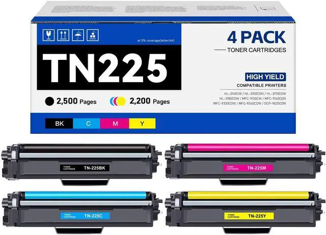 Package Contains: 1Pack TN225 Black + 1Pack TN225 Cyan + 1Pack TN225 Yellow + 1Pack TN225 Magenta Toner Cartridges (Total 4 Pack) ^^ High