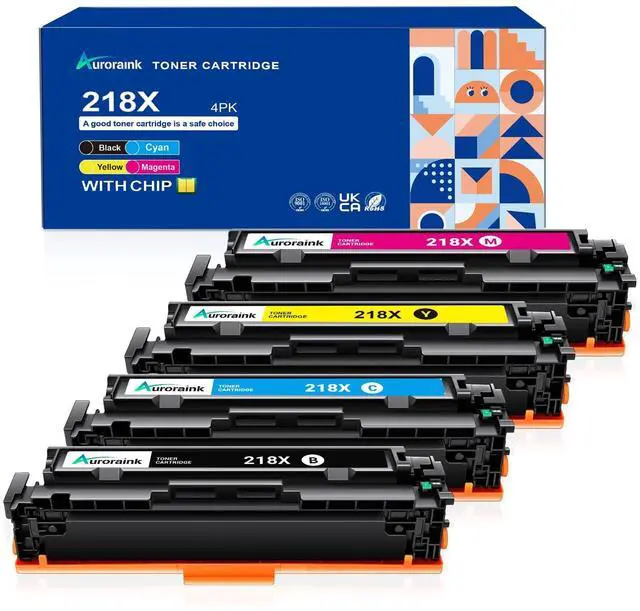Package Contents: 218X toner cartridges 4 pack with chip replacement for HP 218A 218X toner cartridges (1 * 218X black toner cartridge, 1 * 218X cyan toner cartridge, 1 * 218X magenta toner cartridge, 1 * 218X yellow toner cartridge) ^^