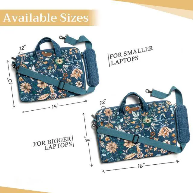 Artsy Designs and Vibrant patterns in vibrant colors provide huge visual interest, setting our bags apart. It is a versatile choice for just daily use, travel or commuting and a true delight to carry around. ^^ Comes in two sizes o Small 14 Width, 10 Length, 1.2 Deep (Outer dimension) Compatible with 12- 13.3 Laptops / Ultrabooks, 13- 13.5 Laptops / Notebooks / Ultabooks. o Large 16 Width, 11 Length, 1.2 Deep (Outer dimension) Compatible with 15 Macbook air / Macbook pro, 15.3 ipad pro and most 14- 14.56 Laptops / Notebooks / Ultrabooks.