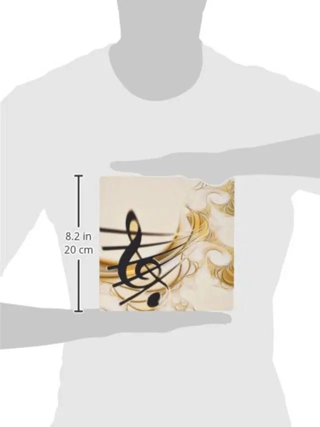 print of classical with clef in gold and black Mouse Pad is 8" x 8" x. 25" and is made of heavy-duty recycled rubber. Matte finish image will not fade or peel. Machine washable using a mild detergent and air dry.
