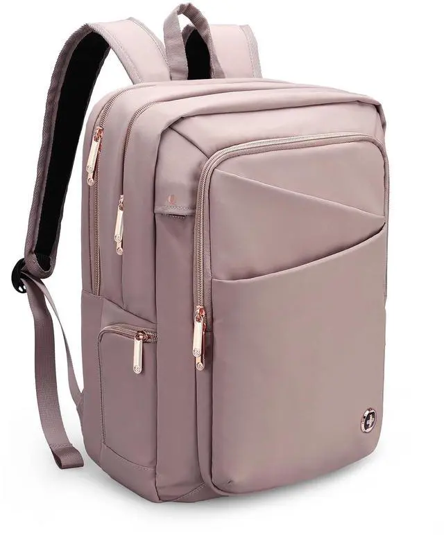 COMMUTER PICKSThis 23l compact business size backpack ( 1.79 lbs, 16H x 11W x 7D) keeps you organized with 4 separate large & several small compartments. Ideal for daily commuters carrying a 15.6 laptop, a tablet, textbooks, 2-3 pcs of clothes, bottle, wallet, keys and powerbank, and other daily essentials, not for overnight load. ^^ STYLISH PROTECTION Women backpack made with high quality materials and Swiss Design to provide both style and protection for your belongings. The velvet lined sunglass pocket gives your sunglasses comfort and protection.