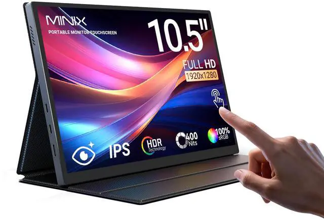Stunning FHD IPS Display: The 10.5 -inch FHD portable monitor features a sharp 19201280 IPS display with a wide 178 viewing angle for clear and consistent visuals from most angles. Covering 100% sRGB, it delivers accurate and vibrant colors for work, design, movies, or gaming. With low blue light technology, this touch screen monitor reduces eye strain for comfortable long-term viewing, making it ideal for both office tasks, study, and on-the-go entertainment ^^ Protective