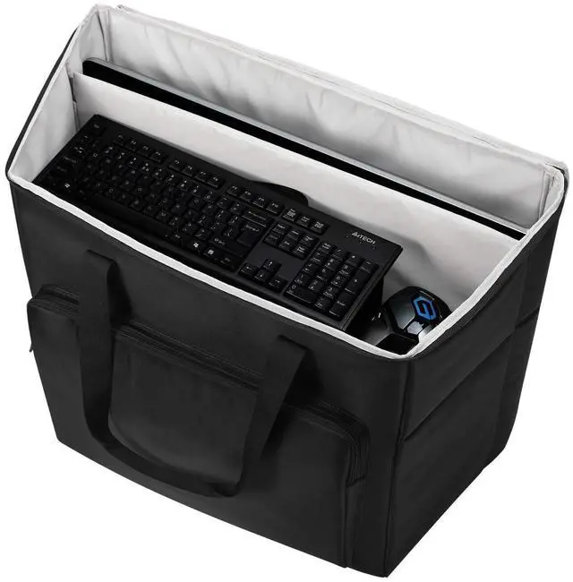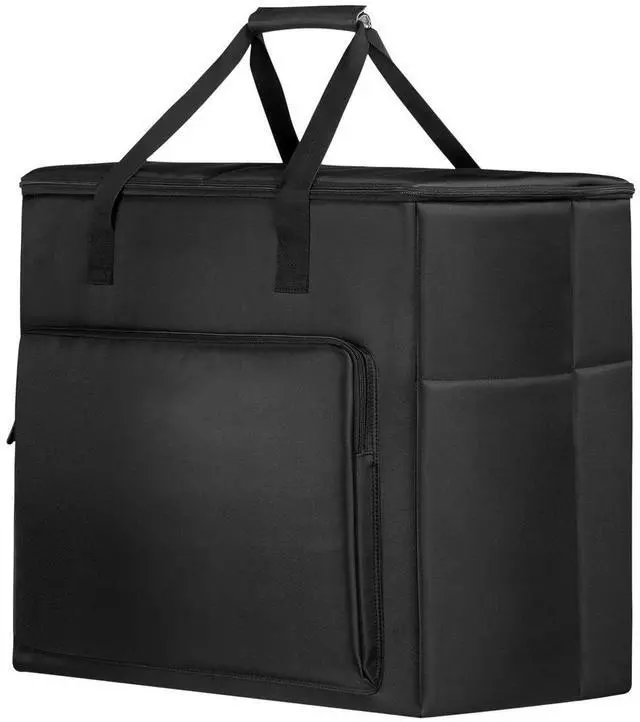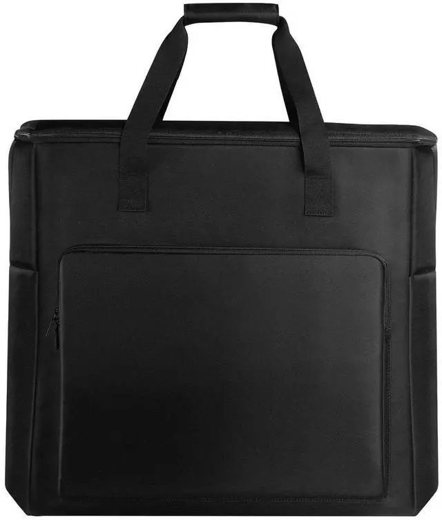 The Buwico BUBM Multi-pocket Large Capacity Desktop PC Computer Travel Storage Carrying Case Bag Organizer is designed to securely transport your 27-inch desktop computer, monitor, keyboard, and numerous accessories. This durable, waterproof, and dustproof bag features a scratch-resistant, wear-resistant fabric and a thickened handle with a stick strap for easy, comfortable carrying. The internal multi-partition design keeps your equipment organized, while the smooth double zipper and four non-slip pads ensure secure storage and retrieval. Measuring 25.2 x 15.75 x 21.26 inches and weighing 1848 grams, this unisex, black bag offers 74.8 liters of capacity.