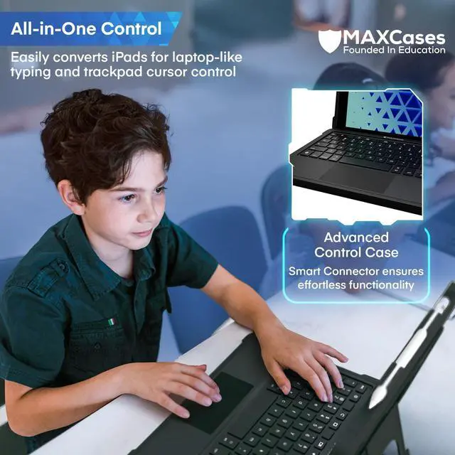 The MAXCases Extreme KeyCase-T with Smart Connector & Trackpad is a rugged, all-in-one keyboard case designed for iPad Pro 11-inch (5th Gen) users seeking durability, seamless connectivity, and enhanced functionality. This protective case allows users to choose between typing, touchscreen, or trackpad navigation, making it ideal for work, school, and daily use. The rugged TPU bumper surrounds both the iPad and keyboard, offering shock-absorbing protection against drops, scratches, and daily wear. The integrated, non-detachable keyboard ensures that both the keyboard and stylus remain securely in place, reducing the risk of misplacement.