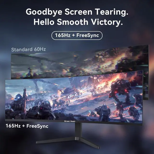 ^^ [Pro-Grade Color: 127% sRGB & HDR400] Experience breathtaking visuals with 127% sRGB color gamut and 3000:1 contrast ratio. Combined with HDR400 and up to 400 nits brightness, this monitor delivers deep blacks, vivid highlights, and precise color accuracy for professional photo editing and cinematic gaming. ^^ [Adaptive-Sync & Versatile Connectivity] Eliminate screen tearing and stuttering with FreeSync technology for seamless GPU-to-monitor synchronization. Equipped with DP 1.4 (165Hz) and HDMI 2.0 (100Hz) ports, plus 100x100mm VESA support, it offers the ultimate flexibility for any high-end workstation or gaming rig. ^^ 3-Year Peace of Mind ^^ Every Great voell monitor is backed by our 3-year comprehensive warranty, providing the long-term reliability you deserve.