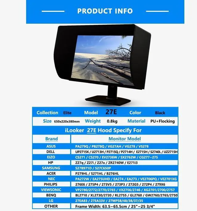 BlackFeatures: Use iLooker monitor hood make the screen more realistic and more clear. Eliminate effect of ambient light and reflection. Reduced the interference of ambient light can make screen color rendering more accurate to meet the needs of professionals. Reduce brightness of display can obtainthe same or even better visualization. Eye irritation will be reduce. At the same time, it can reduce energy consumption. Privacy of the leak on the display. Display light disturb others rest in the evening. Surrounding environment affect powers of concentration. Too much dust on the screen affect the visualization. Use iLooker monitor hood means no worries above no longer.