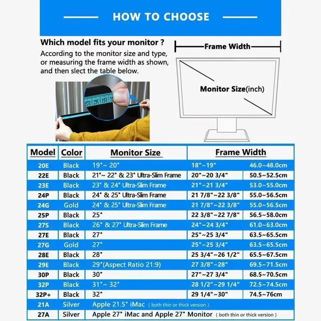 Frame Width: 25"-25 3/4"( 63.5 - 65.5 cm)Monitor