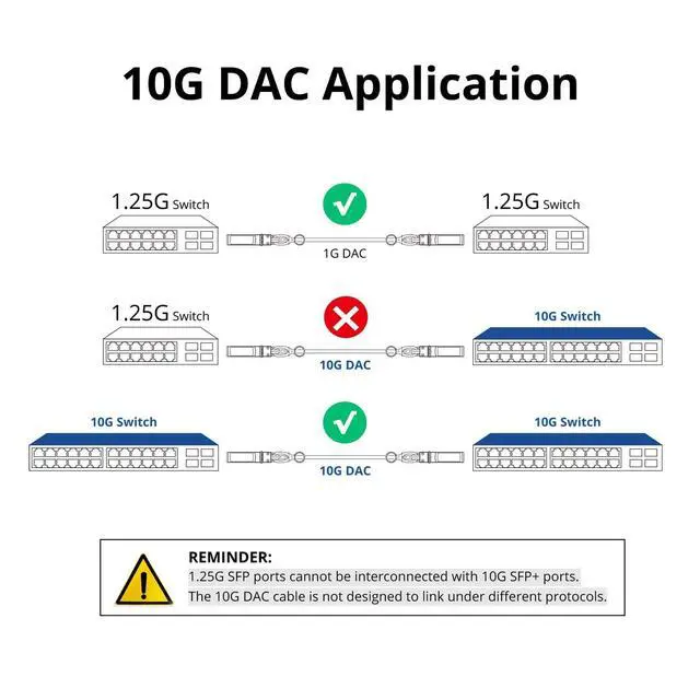 ^^ -: Passive SFP+ Twinax Cable eliminates the need for SFP+ transceivers, reducing deployment costs by 40%+. For DAC (Direct Attach Copper), it is generally recommended not to exceed 5 meters when connecting switch-to-switch, and 3 meters when connecting to network interface cards (NICs). If longer distances are required, AOC is a better choice.