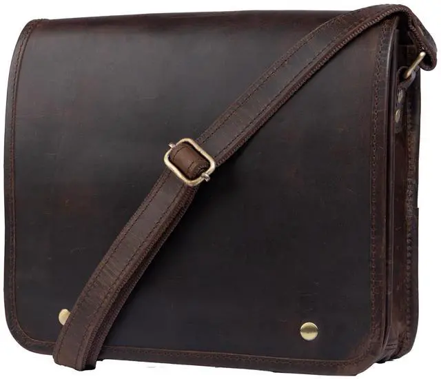 Imported Genuine Leather With Durable Canvas Lining ^^ Right Choice 11" Leather Shoulder Bag Handbag Cross body Handbag Bag ^^ I pad Messenger Bag Travel Purse 11X9X3 Brown ^^ Naturally Processed Leather Which Is Chemical Less, Non-Allergic and Eco Friendly Brass/ Metal Fitting Buckles and Holders and Internally Lined with Strong Green Canvas Make it Durable and Long Lasting ^^ Vintage Leather Bag. It Is Handcrafted Using Pure 100% Genuine Goat Leather. Dimension - (W x H x D ) - 11 x 9 x 3 inch, 2 Zipper Pockets, Long and adjustable Shoulder Straps