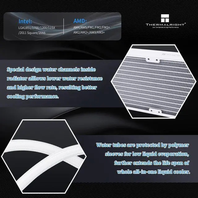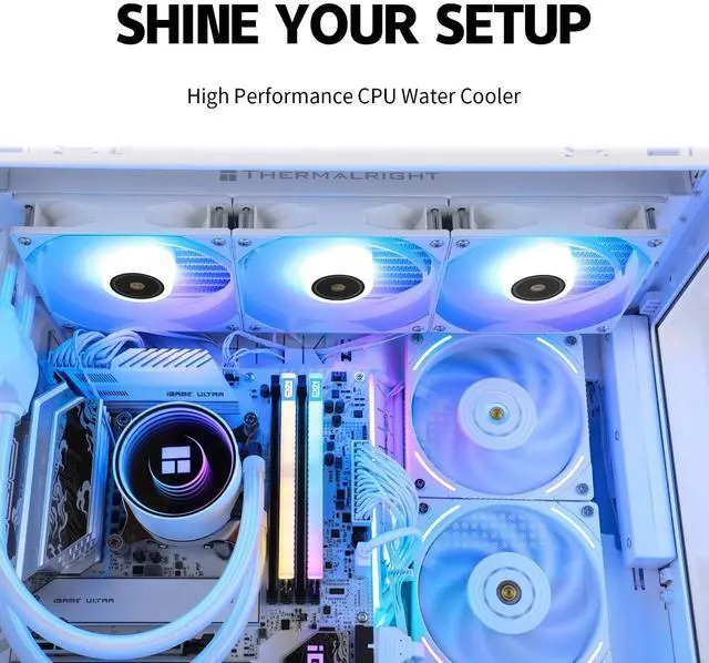 Better coolingWater block with full copper mirror plane base + 360 specification white aluminum fin cold plate + high polymer woven protective water pipe + standard 120mm ARGB fan to create low resistance, high cooling, low Evaporative, long-life integrated water-cooled cooler. ^^ ARGB God Light Synchronization The ARGB of the pwm fan and the water-cooling head is synchronized with the 5V 3pin on the motherboard, 1600W color soft light effect, efficient cooling while providing rich lighting effects (creating a dazzling light world), supporting lighting effects Connect in series to avoid insufficient light slots.