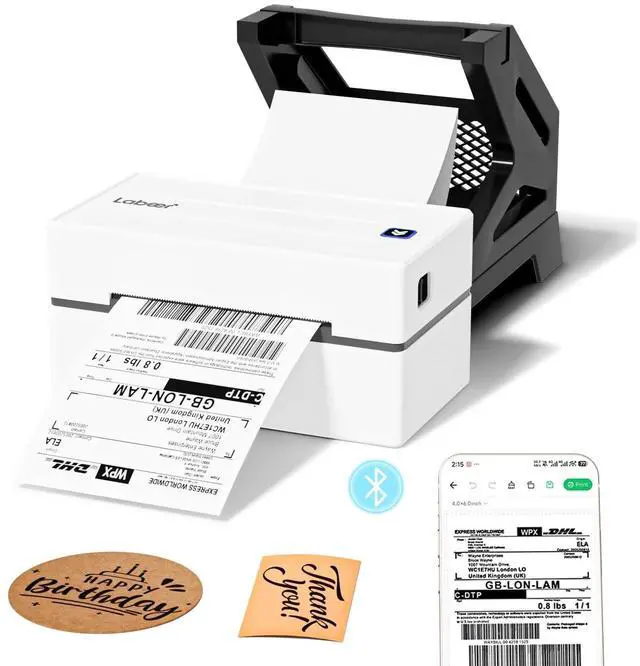 Advanced Technology ^^ High-Speed EfficiencySay goodbye to messy ink cartridges and expensive toner! The LABEER thermal shipping label printer features cutting-edge thermal printhead technology, delivering stable, high-quality printing at blazing speeds. With the capability to print 70 labels per minute, this efficient and ink-free solution lowers your long-term costs, making it ideal for e-commerce and shipping. ^^ Smart Wireless PrintingLABEER printer lets you print wirelessly from your phone anytime, anywhere. Just download the "FlashLabel Pro" app (available for both iOS and Android), connect via Bluetooth, and you're ready to go! The app comes packed with 3, 000+ templates, 5, 000+ icons, and 100+ fonts for all your labeling needs.