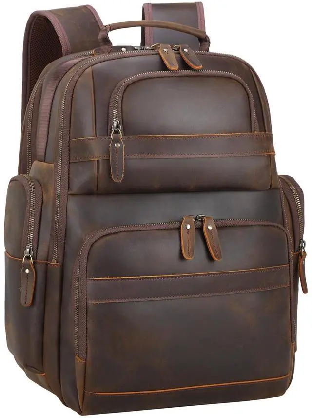 DescriptionTIDING Leather 15.6 Inch Laptop Backpack Large Capacity Business Travel DaypackMaterial: 1.8 mm-2mm thick durable leather with nylon sponge pad (not all leather)