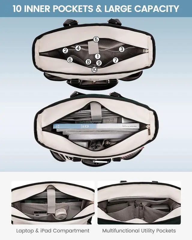 Versatile Use: Our work tote bag for women boasts 10 interior pockets, making it perfect for organizing your work essentials. Whether you're a nurse, teacher, or professional, this tote bag ensures everything has its place.