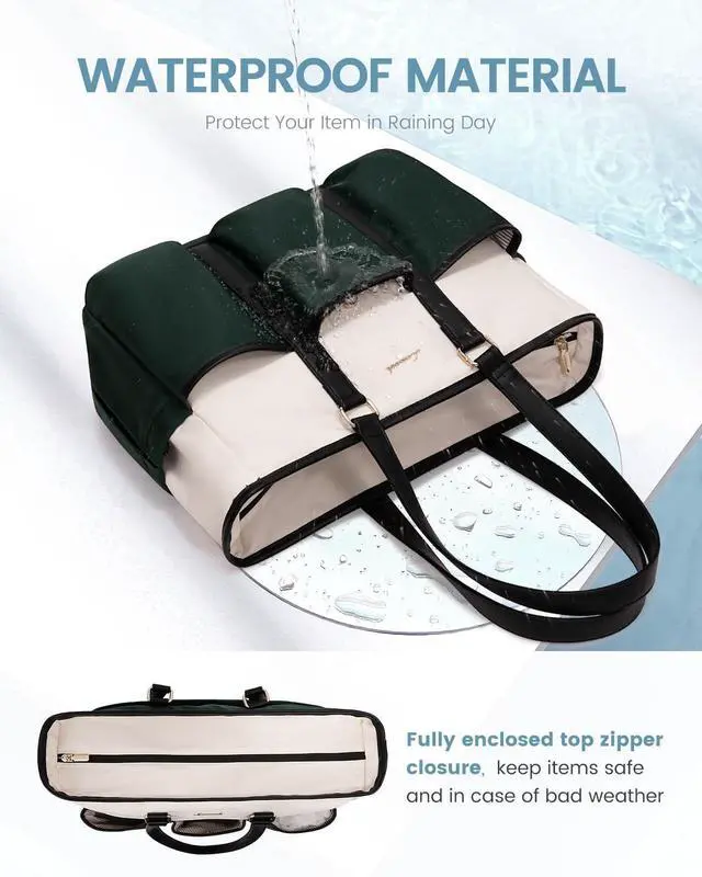 ^^ Enhanced Security: The fully enclosed zipper top of the laptop tote bag for women offers maximum security, preventing items from falling out and keeping them dry in the rain. Perfect for both professional and casual settings.