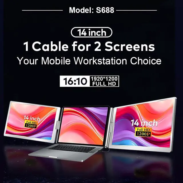 Stunning Visuals - Designed for 13.3 - 17.3" laptops, it expands screen real estate for optimized efficiency. Enjoy crisp FHD 1200P IPS 14 inch Screen - A Full HD 1920 x 1200P resolution and 16:10 aspect ratio, IPS screen and 60Hz refresh rate, 45% NTSC delivers rich color and clear images in a 360viewing angle, The 14 Inch screen extender provides laptop users with the multi-screen synchronized displays or the standalone display solutions for effective multitasking. It is perfect for use in multi-person conferencing, code writing, stock analysis, travel work, academic research, and video conferencing.