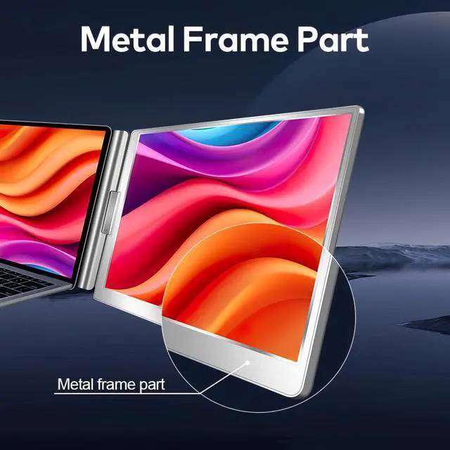 ^^ Triple Screens with 300% Productivity - WGK dual screen laptop allows you easily handle multi-tasks and improve your work efficiency by up to 300%. The full left 360rotation and right 360display mode achieve meeting sharing. Enjoy seamless connectivity with this triple laptop screen extender. ^^ Back Bracket & Foldable Design - The WGK laptop portable monitor is designed with an adjustable bracket at the back of the frame, so you can adjust the length to a comfortable viewing angle and keep stability without falling off. Also, the dual monitor extender is foldable, so it doesnt take up space and can be taken with you wherever you go.
