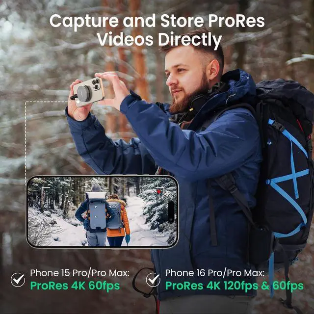 Store ProRes Videos Directly: For iPhone 15 Pro/Pro Max or iPhone 16 Pro/Pro Max users, this external SSD is a game-changer. You can record 4K 60p ProRes or 4K 120p ProRes videos directly onto the drive, freeing up space on your phone and ensuring your high-res content is securely stored. Its ideal for mobile filmmakers or photography enthusiasts looking for smooth, uninterrupted recording ^^ Ample Storage to Shoot and