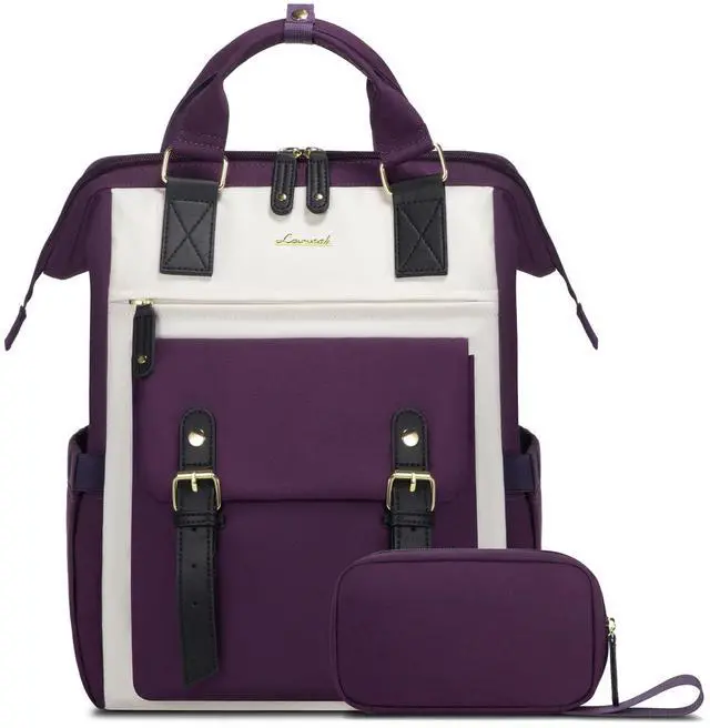 LOVEVOOK Laptop Backpack for Women, Teacher Nurse Bag Work Travel Computer Backpacks Purse,Water Resistant Daypack,Beige Purple 17.3in