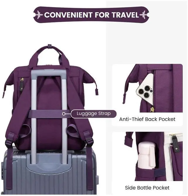 • Women Travel Backpack: Traveling with this personal item travel bag is a breeze, thanks to the trolley strap that can attach to your luggage. The stretchy side pockets are perfect for holding water bottles, and with a hidden anti-theft pocket, you can travel with peace of mind