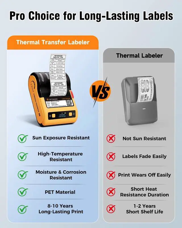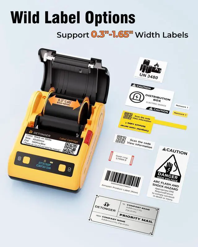 Industrial-Grade Heavy-Duty Body for Harsh Job Sites300DPI, Shockproof, wear-resistant, and dustproof reinforced build withstands construction site collisions and heavy dust ^^ Sunlight-Resistant Design for Outdoor LabelsUsing thermal transfer technology with better light resistance, labels stay sharp and fade-free under direct sun/lighting ^^ Professional Thermal Transfer for Durable LabelsScratch-proof, waterproof, and fade-resistant prints endure harsh job site wear and tear ^^ Wide Printing for Versatile SizesSupports 0.3" - 1.65" label widths, perfect for cables, pipes, equipment, and building materials ^^ 30mm/s Stable Speed for Efficient Batch PrintingFast, lag-free printing boosts productivity for on-site inventory and safety marking ^^ Dual-End Editing (APP + PC) for Flexible UseEasily design custom templates anytimeadjust text, barcodes, and QR codes seamlessly via mobile or desktop ^^ Rechargeable Battery for All-Day UseDual 1500mAh high-capacity lithium batteries deliver 4 hours of continuous printing on a single charge ^^ DC 5V/1A Fast Charging to Prevent DowntimeRapid recharging during critical outdoor tasks, fully eliminating battery anxiety ^^ Versatile Printing (Barcodes/QR Codes/Safety Slogans)Covers inventory management, compliance labeling, and traceability needs ^^ Automatic Cutting Prevents Label WastagePre-cut labels with a built-in cutter eliminate the need for scissors, boosting efficiency in batch label production